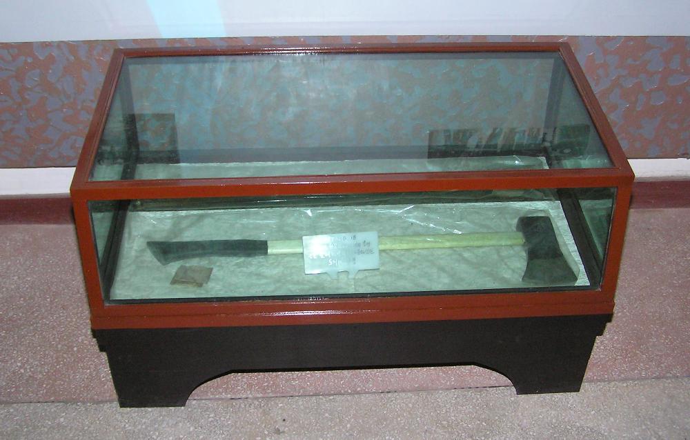 Lindbergs plane in The Smithsonian. In the DPRK the actual axe, the telegraph pole, torture instruments, saws, nails driven into heads, etc