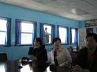 standard litany about the Kims. This is a KIS room at a middle school. The girl is talking in the standard high falsetto voice used by