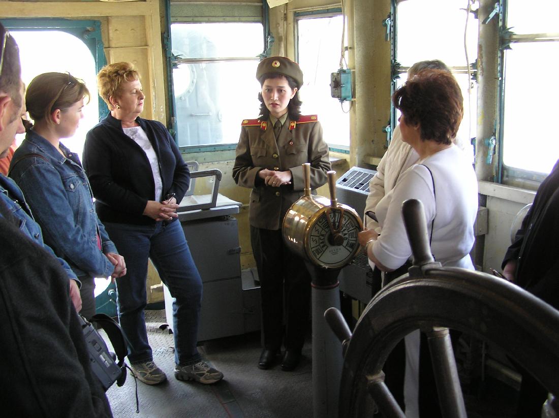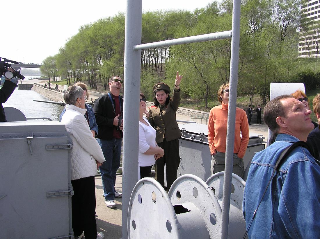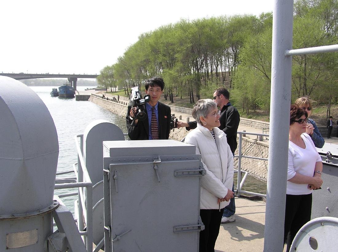 6. With a group of Australian tourists on the Pueblo. Note the cameraman getting footage for showing on DPRK TV. We were shown a video