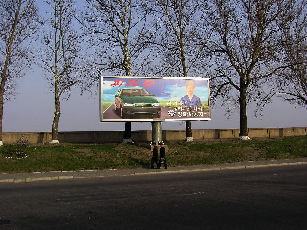The first thing to hit me was a mile from the airport: 2 Western-style billboards for the Fiat car now assembled in the DPRK ('Whistle'.)